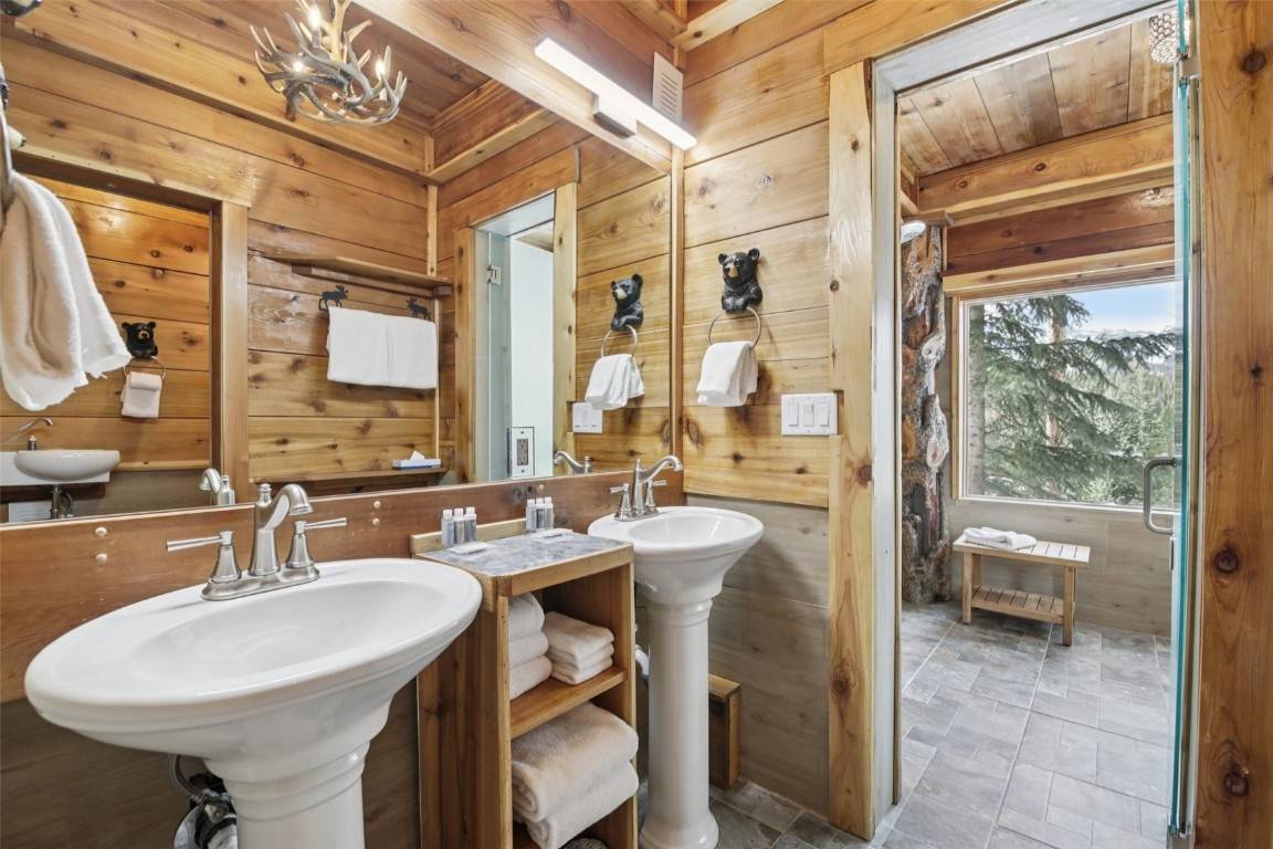 A dramatic top-floor primary suite creates a private sanctuary with its own fireplace, wet bar, dedicated deck, dual walk-in closets, and a luxurious five-piece bath framed by stunning mountain views. At the heart of the home, the gourmet kitchen is designed for gathering—soaring 20-foot vaulted ceilings, a breakfast nook, and seating for up to 17 set the stage for effortless entertaining, while Peak 10 views, a wood-burning fireplace, and direct deck access complete the experience. A second primary suite on the main level offers an attached bath and walk-in closet, providing flexible options for guests or main-floor living.